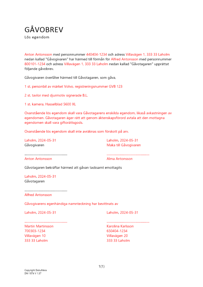 Produkter taggade med 'fastighetsgåva Gåvobrev lös egendom givare mottagare gåva Bevittning fast egendom äganderätt giftorätt'