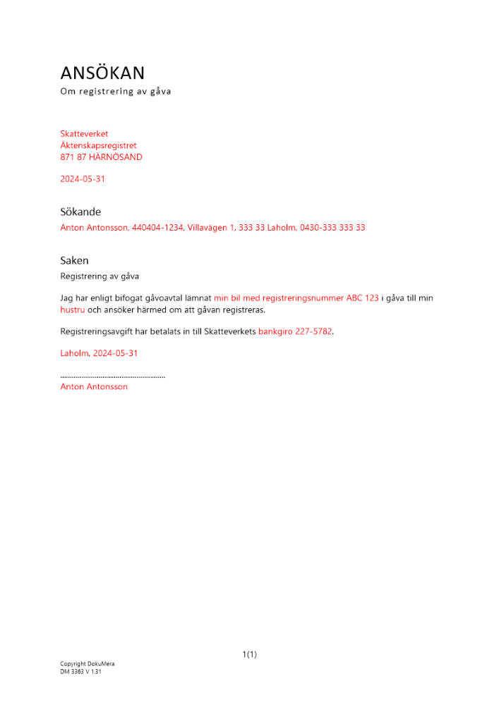 Produkter taggade med 'Gåva makar gåva mellan makar registrering lös egendom'