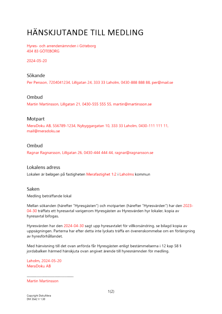 Produkter taggade med 'Hänskjutning ansökan begäran medling hyresvärd hyresgäst villkorsänding hyra avtal hyresavtal lokal'