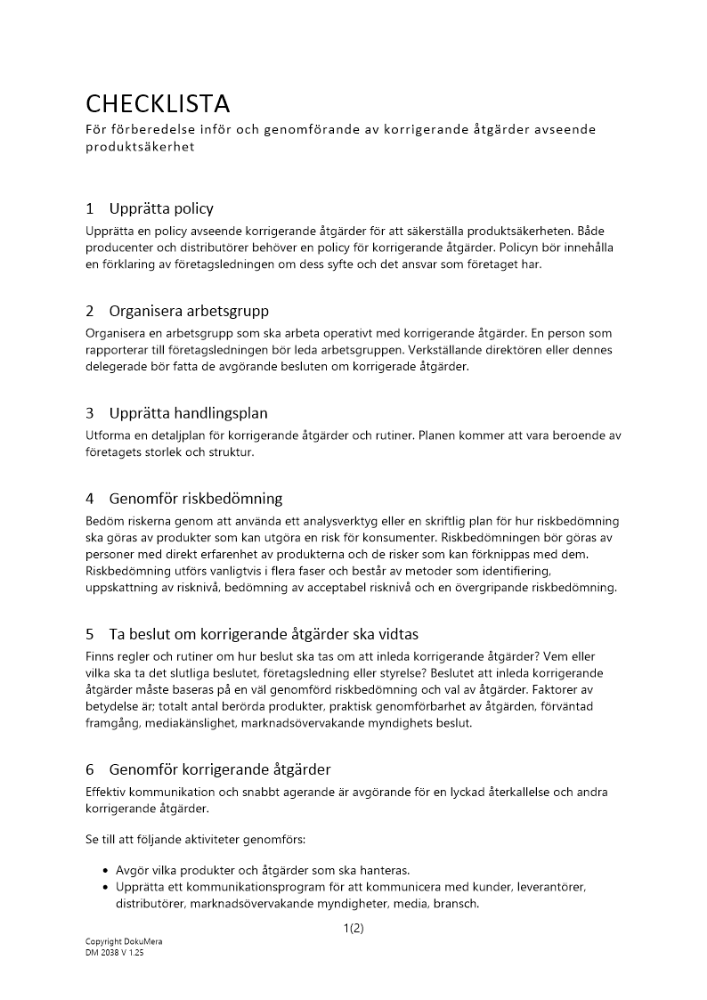 Produkter taggade med 'kvalitet kvalitetssäkring Checklista åtgärder produktsäkerhet korrigera rätta till rättning produkt'