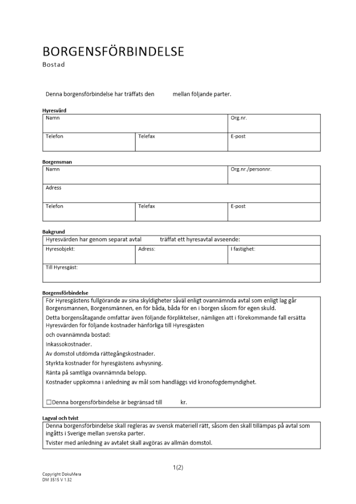 Produkter taggade med 'Borgensförbindelse lägenhet bostad borgensman borgensmän borgensåtagande skuld hyresrätt hyresbostad'