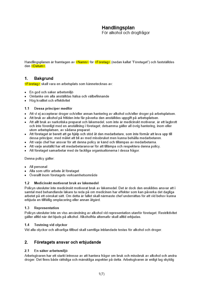 Produkter taggade med 'Handlingsplan alkohol droger alkoholfrågor drogfrågor arbetsplats plan missbruk'