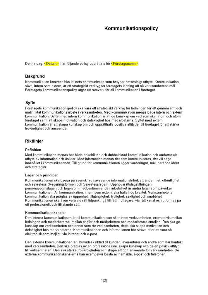 Produkter taggade med 'Kommunikationspolicy policy kommunikation information företagshemligheter info förmedla'