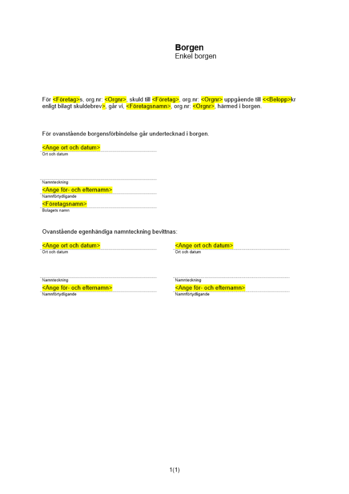 Produkter taggade med 'Enkel borgen borgensman efterborgen överborgen gäldenär skuld betalning vanligt standard'