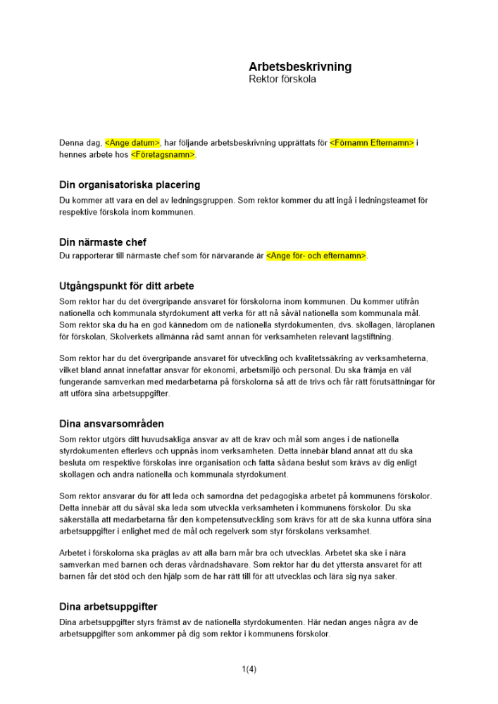 • Arbetsbeskrivningar