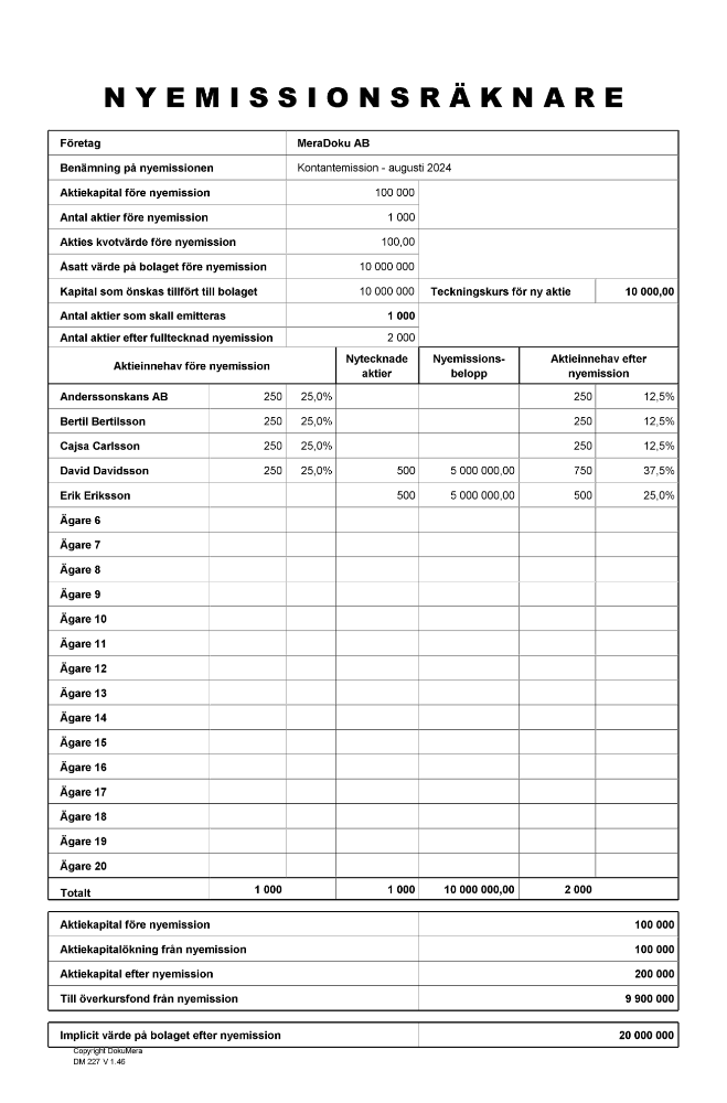 Produkter taggade med 'kalkyl Excel finansiering kapitaltillskott nyfinansiering kapitalisering Excel Spreadsheet file Excelmallar Nyemissionsräknare aktier nyemission börskursen'