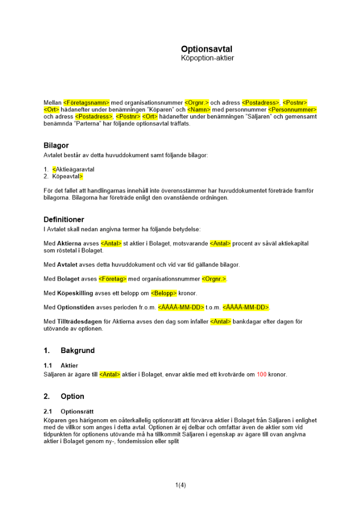 Produkter taggade med 'Option köpa aktier enkel option ersättning utan garantier köpoption bestämt pris bestämd tidpunkt'