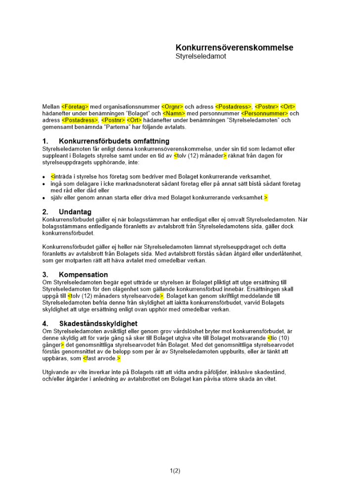 Produkter taggade med 'konkurrens konkurrens avtal konkurrensavtal konkurrensöverenskommelse konkurrens konkurrerande verksamhet ledamöter konkurrent styrelse'